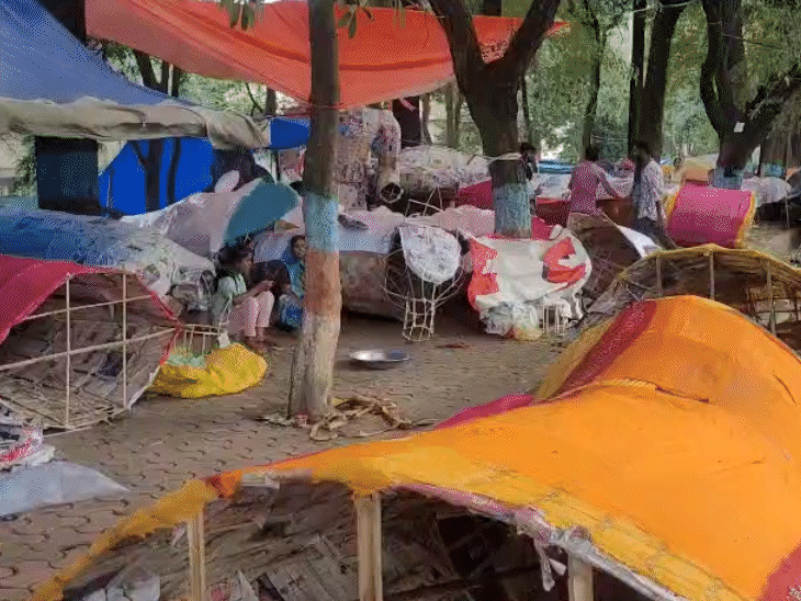 This time, effigies of Ravana will be burnt amidst rain in Madhya Pradesh. Due to a new system, the Meteorological Department has issued a rain alert. Because of this, the demand for waterproof effigies has increased. In Bhopal’s market for Ravana effigies, there is a demand for waterproof effigies. The same situation arose in 2022. Effigies had to be burnt by sprinkling petrol in Bhopal. Although the monsoon has completely receded from 12 districts of the state including Gwalior-Ujjain, the effect of the new system activating from October 1 can also be seen in these districts. Light rain has been occurring here for the last 3 days. Meanwhile, the Forest Department headquarters is also on Link Road No. 2. Right in front of it, a market for Ravana effigies is set up. In such a situation, a dispute arose on Monday afternoon regarding the removal of the market. Many artisans reached outside the office and started protesting against the removal of their shops. Police also reached the spot. However, the matter later calmed down. See the market of Ravana effigies in Bhopal in pictures… Effigies up to 40 feet tall in Bhopal Around 300 artisans are preparing effigies at several places in Bhopal, including Banskhairi, Tulsi Nagar, and Eitkheri. Effigies ranging from 5 feet to 40 feet tall are available in the market, with prices going up to 50 thousand rupees. Around 7 thousand small and large effigies will be burnt in the city. Artisan Vaidik Kumar Vanskar said, the market is slow due to rain. Only 10 to 12 orders have come so far, whereas last year there were more. There is a demand for waterproof effigies, but their cost is higher. They are also using plastic paint on the effigies. Artisan Prem Bansal said, it is becoming difficult to preserve the effigies due to rain, as people have not yet taken them. Only 3 days are left for Dussehra. If it rains, there will be more difficulties. This time effigies are expensive Artisan Prem said that the cost of effigies has increased this time. The rates of bamboo, cloth, thread, and other materials have gone up. The effigies we provide to customers are without crackers. If someone wishes to have crackers placed in the effigies, its price will increase. Rainfall during Dussehra for two consecutive years It is worth noting that Dussehra was on October 5, 2022. At that time, the monsoon was retreating from the state. Due to this, heavy rain occurred in many districts. As a result, in Madhya Pradesh, Ravana’s effigies had to face Indra’s arrows even before Lord Rama’s arrows on Dussehra. Due to rain, Ravana’s effigies in the capital also got wet. In the Bansakhedi area, artisans had to keep the effigies at bus stops. This caused them significant losses. Post navigation Gold Breaks Previously All Time High Record In Morning Trade @ MCX Killed with hammer, stone, and shovel:3 watchmen die in 4 days; no robbery or enmity found, raising questions about the motive Part- 1