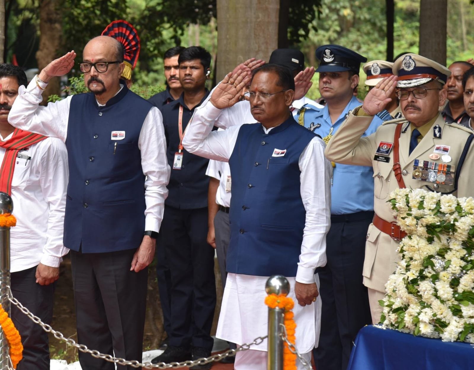 ‘Peace, Safety and Trust in the State Are Possible Only Through the Dedication and Discipline of Police Personnel’: CM Shri Vishnu Deo Sai Governor and Chief Minister Attend Police Commemoration Day Parade in Raipur Floral Tributes Paid to Brave Martyrs at the Police Memorial Raipur, October 21, 2025/Governor Shri Ramen Deka and Chief Minister Shri Vishnu Deo Sai today attended the Police Commemoration Day parade organised at the 4th Battalion premises of Chhattisgarh Armed Force, Mana, Raipur. Both dignitaries paid floral tributes at the Police Memorial, saluting the courage and sacrifice of the brave police personnel who laid down their lives in the line of duty. The Governor and Chief Minister met the families of the martyred officers and personnel, expressed heartfelt condolences and assured them of the government’s continued support. On this occasion, shawls, shreephal and mementoes were presented to the family members of the martyrs. Governor Ramen Deka, paying homage to the martyrs, said, “The indomitable courage, valour and supreme sacrifice of the police will forever be remembered and revered by the nation.” He noted that it is due to the unwavering dedication, discipline and round-the-clock service of police personnel that citizens today are able to live in an atmosphere of peace, safety and trust. Calling the duties of the police extremely challenging, the Governor said that maintaining law and order on one hand and ensuring a fear-free environment for citizens on the other represent a dual responsibility that demands immense courage and commitment. Referring to the Naxal-affected areas, Governor Deka praised the Chhattisgarh Police for facing the challenge of extremism with determination, courage and integrity, which has strengthened the atmosphere of peace and trust in these regions. He expressed confidence that the state will be completely free from the Naxal problem. The Governor also conveyed his heartfelt condolences to the families of the martyrs and saluted all police officers and personnel for their consistent service and devotion to duty. Chief Minister Vishnu Deo Sai said that October 21 is a day to remember and honour those brave police personnel who made the supreme sacrifice in the service of national security. He added that police and security forces work tirelessly round the clock under difficult circumstances to safeguard society. “It is because of their dedication and discipline that the state enjoys an atmosphere of peace, security and public trust,” he said. The Chief Minister added that the day is not only an occasion to recall the valour of the police but also to pay heartfelt homage to the sacrifice of their families. He said that Chhattisgarh’s security forces have displayed unmatched bravery in the fight against Naxalism, which has paved the way for rapid development in previously affected regions. He highlighted that schemes such as Niyad Nella Nar Yojana, PM Janman Mission, and Dhartii Aaba Tribal Village Utkarsh Abhiyan are transforming lives in remote tribal areas. CM Sai said that under the leadership of Prime Minister Narendra Modi and Union Home Minister Amit Shah, the campaign to eradicate Naxalism has gained strong momentum, and the state government is committed to achieving complete elimination by March 2026. He paid tribute to the immortal martyrs, stating that “their sacrifice will always inspire us to uphold duty, discipline and devotion.” Deputy Chief Minister Vijay Sharma said that Chhattisgarh’s brave police personnel are continuously fighting with indomitable courage and valour to eradicate Naxalism from Bastar. He said that the police are not only combating extremism but also playing an instrumental role in accelerating development activities in the region. He reiterated that the state government is committed to preserving the memory of the martyrs and supporting their families. Sharma informed that a commemorative booklet (Smarika) will be published to immortalize the sacrifice of the police martyrs. He also highlighted the arrangements made at the IG and SP offices to provide assistance to the families of the fallen heroes. Deputy CM Sharma concluded his address by paying heartfelt tribute to the brave police personnel. The ceremony was attended by MLAs Motilal Sahu and Anuj Sharma, Director General of Police Arun Dev Gautam, Secretary to the Chief Minister Rahul Bhagat, senior police officers, Divisional Commissioner Mahadev Kanware, Inspector General Amresh Mishra, police personnel and family members of the martyrs. Post navigation US immigration dept clarifies on new H-1B Visa fees:$100,000 fee hike does not apply to ‘extension of stay’ or ‘change of status’ of non-immigrant workers in US Governor Shri Ramen Deka and Chief Minister Shri Vishnu Deo Sai Pay Tributes to Martyrs at Shaheed Vatika