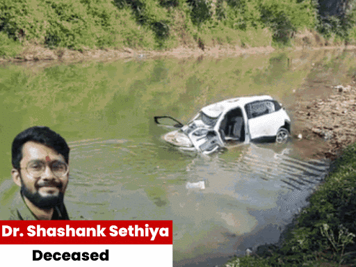 On Thursday morning, a car fell into the Barua river in Uchhehra, Satna district. Dr. Shashank Sethia, posted at Uchhehra Hospital, was in the car. Local villagers immediately started rescue operations. They pulled him out of the car and took him to Uchhehra Hospital in serious condition. After primary treatment there, he was referred to Satna. Dr. Shashank Sethia died en route to Satna District Hospital after his car went out of control and fell into the Barua River near the old bridge at Barua Tirahe around 11 AM. He was heading to duty when the accident occurred. 3 pictures of the accident site Dr. Shashank Sethia was a resident of Ward No. 4 of Uchehra town. He had been posted at Uchehra Government Hospital for about a year. He was alone in the car at the time of the accident. Police have inspected the accident site. The causes of the accident are being investigated. Currently, it is not clear why the car went out of control. Post navigation Delhi police visit Mhow to probe blast suspect Jawad’s trail:Founder of Al Falah University under investigation; team to question family and neighbours in Kayastha Mohalla Adani Group Celebrates 3 Years of Aman Singh’s Excellence, Dedication, Trust, Vision, Transformation, Strategic Thinker And Value Creation