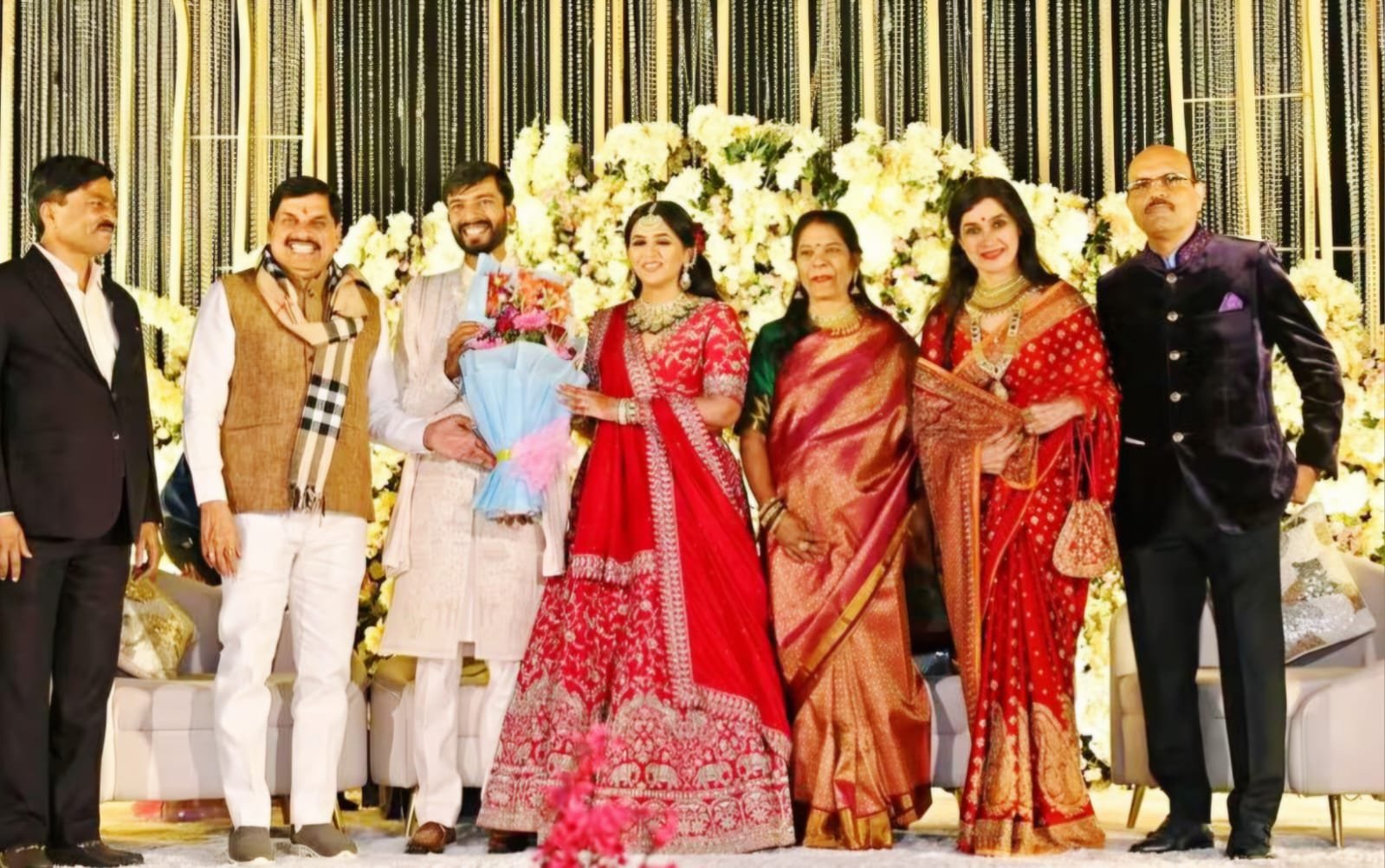 Chief Minister Dr Mohan Yadav and Chhattisgarh Assembly Speaker Dr Raman Singh was present at the wedding of President & Head, Strategy & Chairman’s Office, Adani Group Mr Aman Singh’s Daughter Khushbu Singh and Vijay Singh’s IAS Son Mr Prakhar Singh in Bhopal The wedding of Aman Singh’s Daughter Khushbu Singh and IAS Prakhar Singh occurred at 5 Star Noor us Sabah Palace, Bhopal. The newly married couple videos and images showing the MP Chief Minister Dr Mohan Yadav and CG Assembly Speaker Dr Raman Singh along with bureaucrats, technocrats and business leaders blessing the couple. Its to be mentioned here that IAS Prakhar Singh is a son of Brilliant Officer Mr Vijay Singh. CM Dr Mohan Yadav wished a happy married life to Khushbu Singh and Prakhar Singh. Making the night special for newlyweds, Chief Minister Mohan Yadav attended their wedding in Bhopal. He congratulated the couple and gifted a rose to the couple as a token of best wishes. Sharing a snap from the reception, The Chief Minister wished the couple, writing,”Congratulations @ Khushbu Singh and @Prakhar Singh. Wishing you a happy married life.” In the candid photo, Mr Aman Singh & Mrs Yasmin are seen greeting each other with a namaste. Khushbu and Prakhar turned hosts at their grand wedding reception, held at the Noor us Sabah Palace Hotel in the capital Bhopal. The newlyweds looked their stylish best at the celebrations, While Khushbu Singh was oozing radiance in a stunning sequin lehenga Wore a traditional vibrant red Sabyasachi lehenga. The lehenga featured hand-cut organza flowers, French knots, and Siam-red crystals, with her parents’ and Prakhar’s names sewn into the waistband. Prakhar Singh Wore a hand-quilted silk sherwani in gold or ivory, along with a hand-embroidered chikan dupatta with matching shoes. Post navigation MP Evening Wrap:PM Modi hoists Dharma Dhwaj at Ayodhya Ram Mandir; MP sees 6th BLO death in 10 days amid SIR exercise more CM Dr Mohan Yadav Will Inaugurate 3 Day Civil Service Meet-2025 of M.P. IAS Association At Bhopal On December 19.