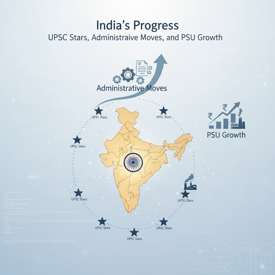 India is a land of relentless progress, where dedication in public service and strategic economic growth are constantly shaping a brighter future. Let’s delve into some recent highlights from our civil services and key public sector undertakings. UPSC: Dreams to Reality The UPSC Civil Services Examination 2025 results underscore the triumph of human spirit: Dr. Th. Vapani John Tao from Manipur, a first-generation learner and doctor, secured AIR 800, proving that obstacles can be overcome with grit. Simrandeep Kaur of Punjab achieved AIR 15, reflecting her consistent effort and strategic study of political science. Pakshal Secretry, son of a humble shopkeeper from Dhar, earned an impressive AIR 8, showcasing the power of determination from modest backgrounds. Overall, 958 candidates qualified, with a strong showing of 299 women, including 11 in the top 25, a truly inspiring trend. Bureaucratic Dynamics and Welfare Recent administrative shifts and welfare measures indicate a responsive governance: IFS Taranjit Singh Sandhu, formerly a US Envoy, is now Delhi’s Lieutenant Governor, while VK Saxena moves to Ladakh. A new CAPF Bill aims to retain IPS officers at senior ranks (IG, DIG), impacting promotions for thousands of paramilitary personnel. Kerala has introduced a special allowance for its IAS, IPS, and IFS officers, acknowledging their demanding responsibilities. The J&K Forest Department underwent a significant reshuffle, with Chaturbhuj Behara appointed PCCF (Wildlife). PSUs: Powering India’s Economy Our Public Sector Undertakings are robustly contributing to national development: PM Modi laid the foundation for a ₹5,514 Crore polypropylene plant at BPCL’s Kochi Refinery, signaling growth in the petrochemical sector. NLC India achieved a stable ‘ACUITE AAA’ rating for substantial borrowings, confirming its financial health. Northern Coalfields Limited is investing in community health by providing advanced medical equipment to Singrauli District Hospital under its CSR initiatives. RailTel secured a ₹115.20 Crore order from Power Grid Corporation, further expanding critical network services. SAIL reported record sales for FY26 and diversified its product portfolio by reintroducing chequered plates, highlighting strong market performance. These continuous efforts across administration and industry reflect India’s unwavering commitment to progress and the well-being of its citizens. Post navigation India on the Rise: UPSC Dreams, Dynamic Governance, and Economic Milestones